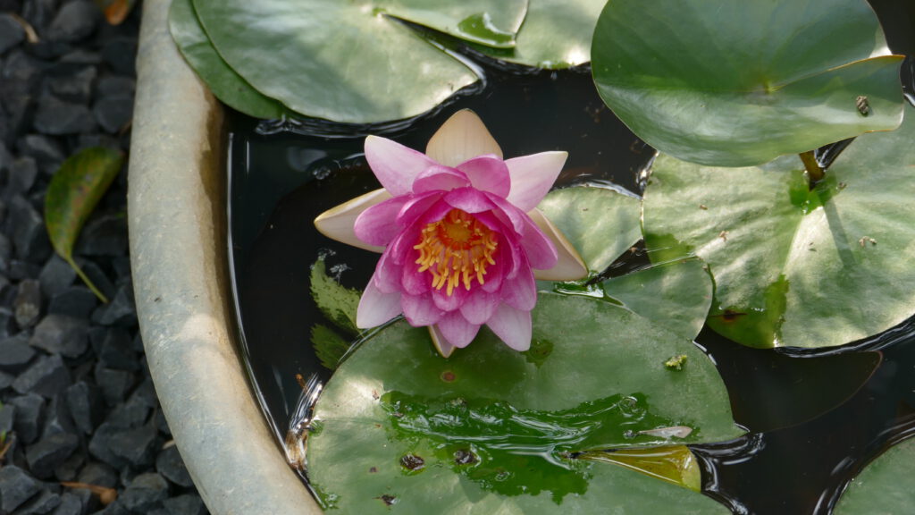Die Rosen vertragen die momentane Hitze nicht sehr gut. Die Knospen blühen auf und am nächsten Tag verwelken sie bereits wieder. Da geht es den Seerosen besser. Ihre Blütezeit fällt meistens in die heißen Tage.