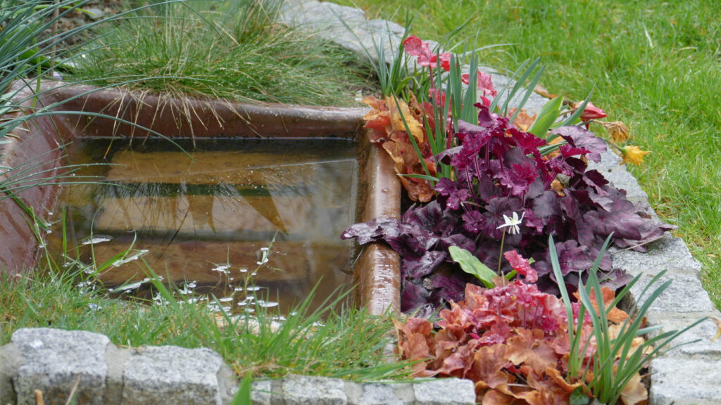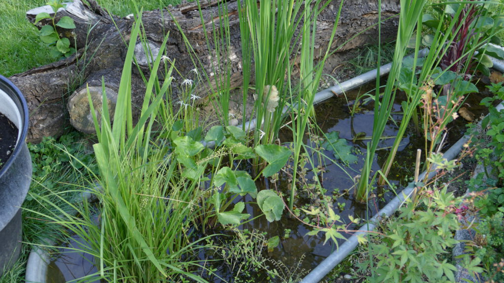 Das Sumpfbeet muss jeden Tag mit Wasser aufgefüllt werden, damit es nicht austrocknet und die vielen Libellen ihren Platz zum Spielen eventuell nicht mehr aufsuchen. Wäre ja schade!