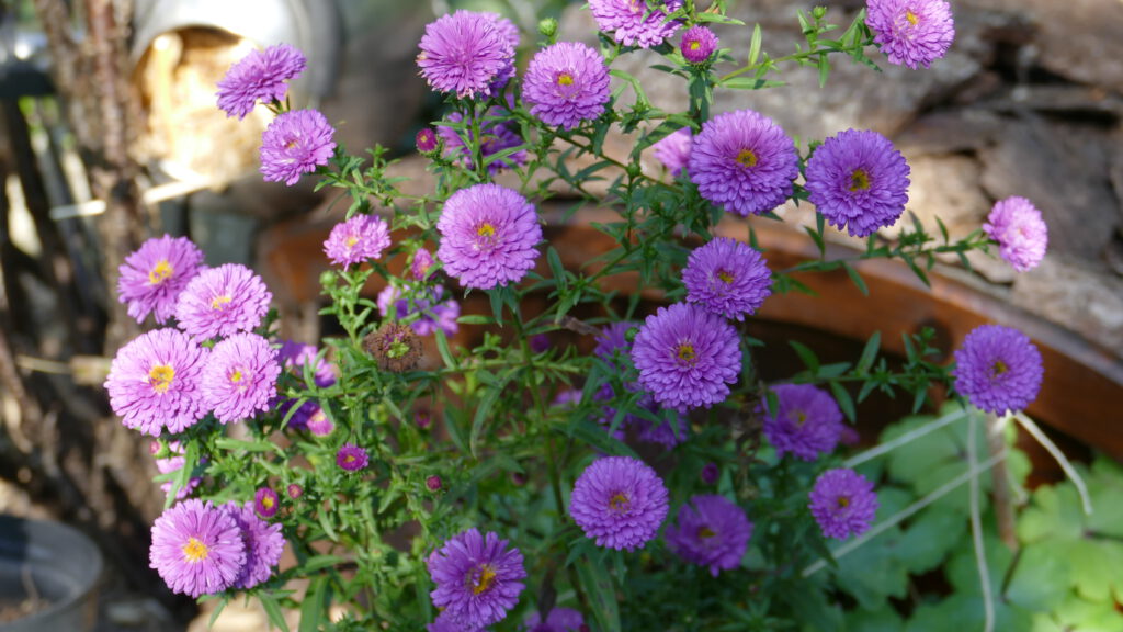 Es gibt verschiedene Herbstastern. Darunter die Kissenastern, die eher niedrig bleiben, so circa 50 cm.