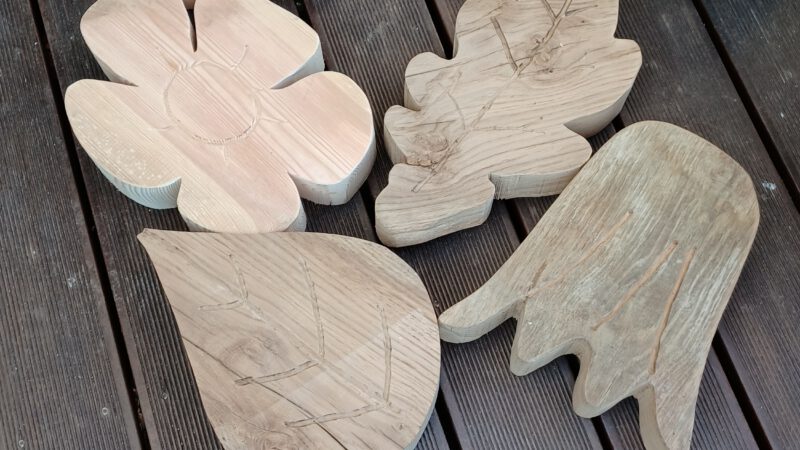 Zufällig sind wir in den Besitz von dicken Vollholzbrettern gekommen und so habe ich mir überlegt, ob man nicht aus den Brettern Trittsteine sägen könnte.