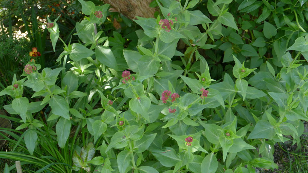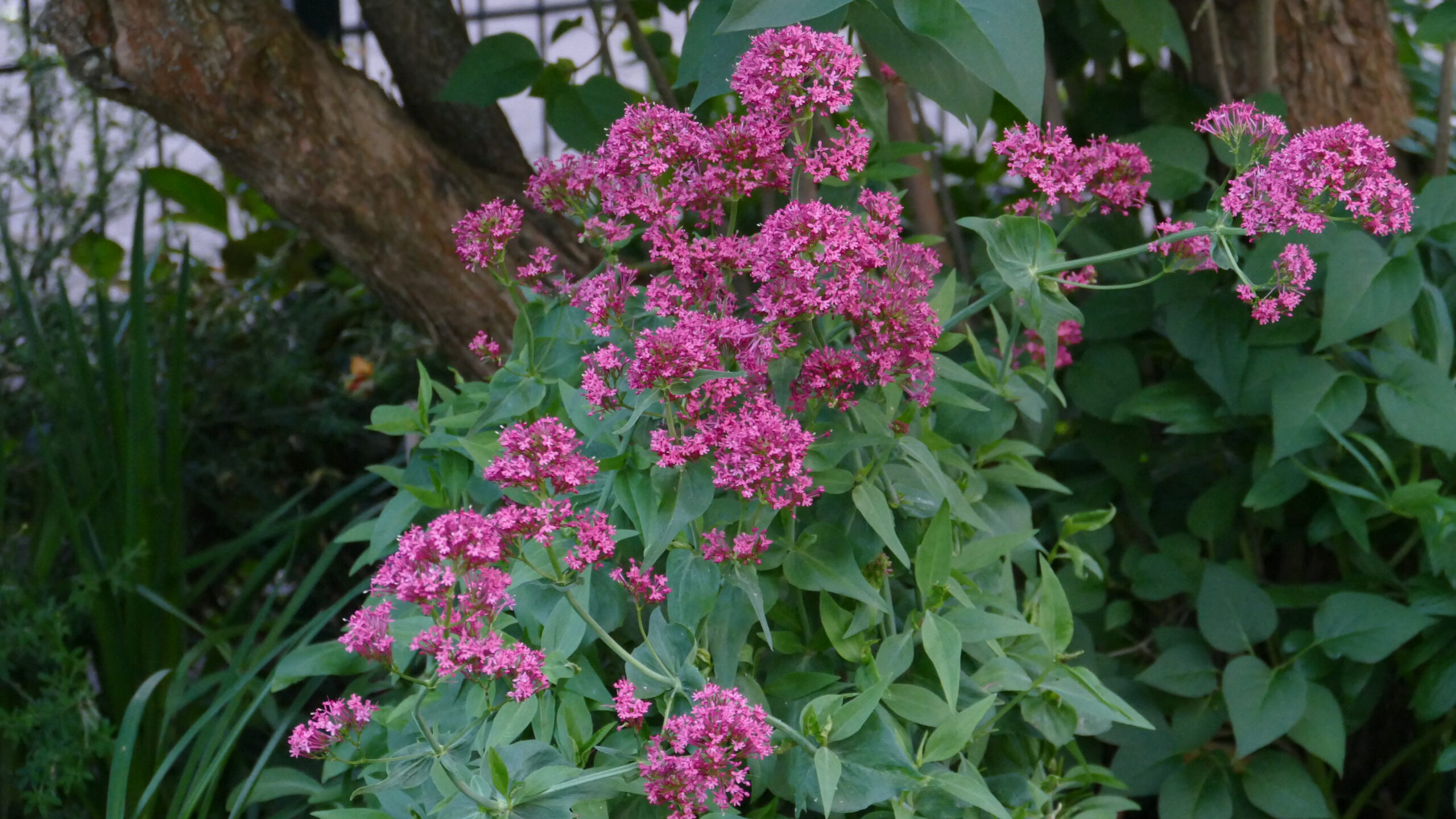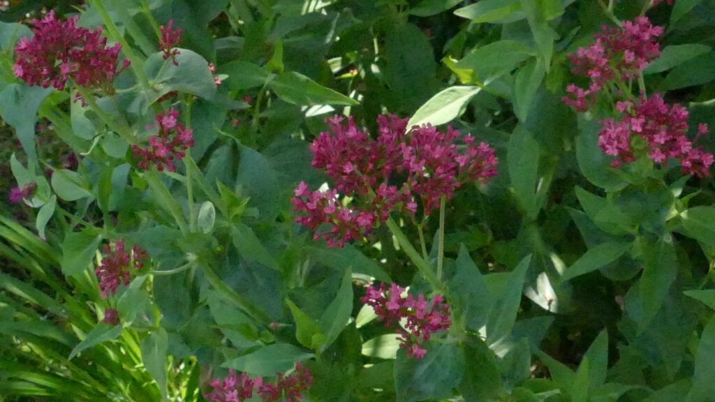 In diesen Tagen blüht die rote Spornblume. Sie ist ein rosa bis hellroter Farbtupfer im Garten mit hellgrünen Blättern.