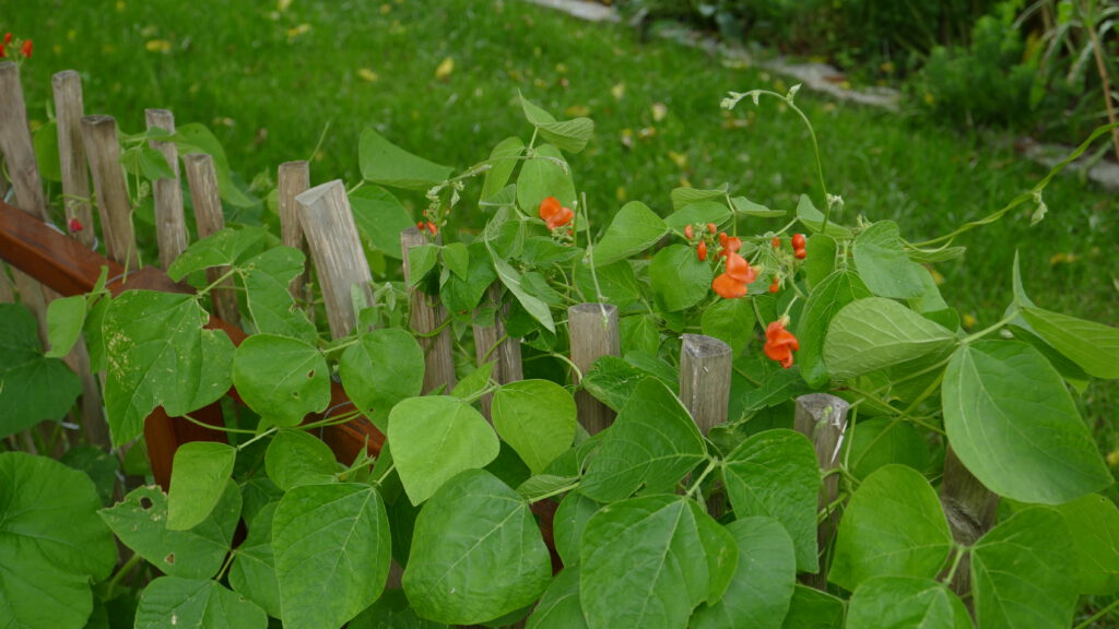 Bei mir finden zwei Clematis Platz. Außerdem habe ich im vergangenen Frühjahr Feuerbohnen gepflanzt. Die Ernte war zwar winzig, aber die Ranken der Pflanze und auch die roten Blüten waren sehr schön.
