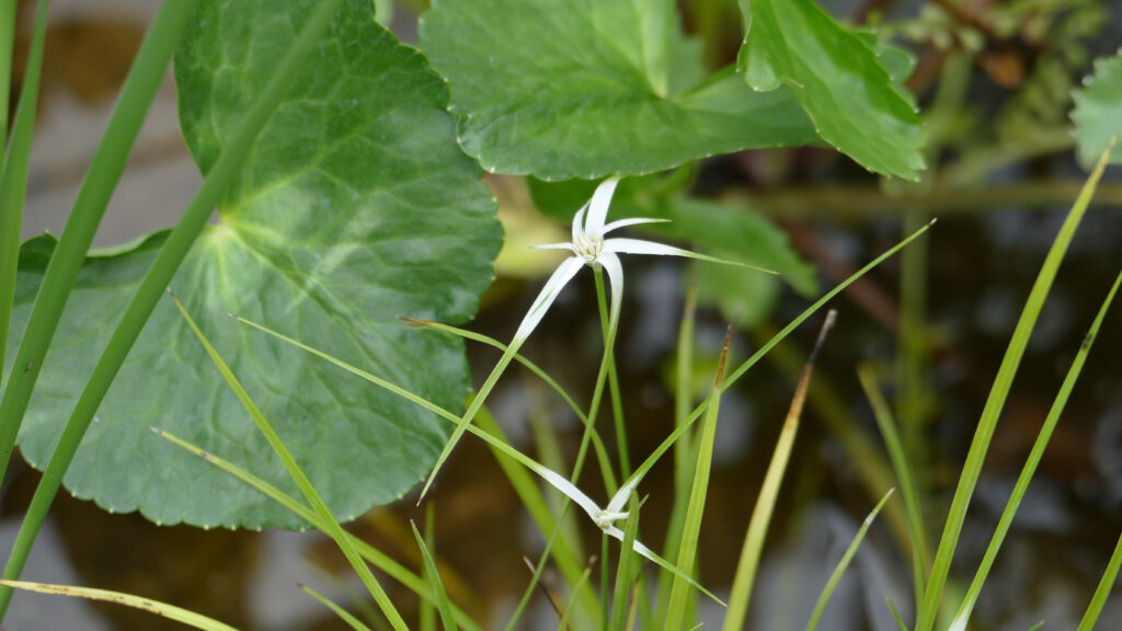 Die Sumpfdotterblume blühte als erstes. Jetzt stehen Sumpfvergissmeinnicht und die Gauklerblume in voller Pracht. Das Wollgras hat zwar nur einen Blütenstängel, aber der ist echt die Wucht!